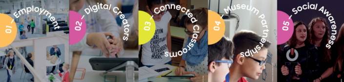 As outlined throughout the brochure, this commitment has been expressed through years of initiatives spanning employment, digital creation, connected classrooms, museum partnerships and issues of social awareness.