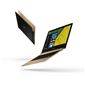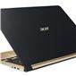 The Acer Swift 7 (SF713-51-M90J) comes in a black and gold aluminum unibody to emphasize that the device is one of the premium products in the manufacturer’s lineup. The thickness of the laptop with a 13.3” FHD display covered with Corning Gorilla Glass 4 is 9.98 mm (0.39”), which is thinner than Apple’s MacBook as well as Dell’s Adamo XPS, both of which are renowned for their thin form factors. As for mass, the device weighs 1.12 kilograms (2.48 lbs), which is a tad heavier than the MacBook.