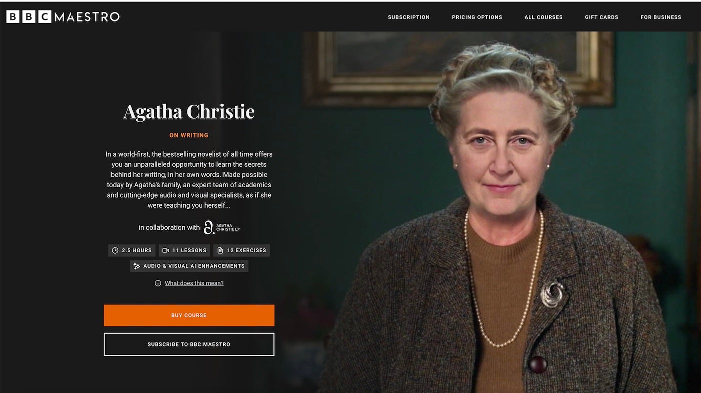 BBC Maestro, a subscription-based academic streaming platform, options Christie as the trainer of a writing course that features 11 classes and 12 workout routines on crime storytelling. The 20-minute movies mix AI-generated visuals with archival audio, enabling Christie to current steerage on the construction, pacing, and stress of a compelling thriller narrative.