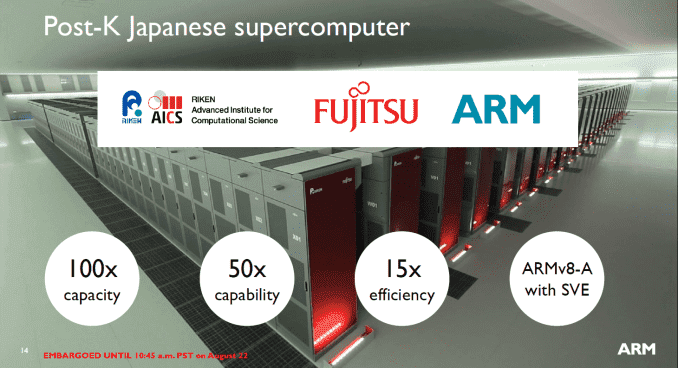 Today ARM is announcing an update to their line of architecture license products. With the goal of moving ARM more into the server, the data center, and high-performance computing, the new license add-on tackles a fundamental data center and HPC issue: vector compute. ARM v8-A with Scalable Vector Extensions won’t be part of any ARM microarchitecture license today, but for the semiconductor companies that build their own cores with the instruction set, this could see ARM move up into the HPC markets. Fujitsu is the first public licensee on board, with plans to include ARM v8-A cores with SVE in the Post-K RIKEN supercomputer in 2020.