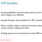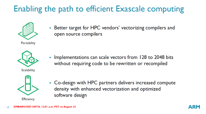 Performance metrics performed in ARMs labs show significant speed up for certain data sets already and expect that over time more code paths will be able to take advantage of SVE. ARM is encouraging semiconductor architecture licensees that need fine-grained HPC control to adopt SVE in both hardware and code such that as the nature of the platform adapts over time both sides will see a benefit as the instructions are scalable.