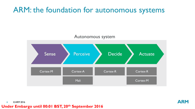 ARM is particular interested in the Advanced Driver Assistance Systems (ADAS) market, where the Cortex-R is part of a full system of ARM IP. A full ADAS setup from start to end would utilize all three processor types – M, R, and A – with the Cortex-R handling the real-time decision making and executing on those decisions, while Cortex-A would be used to handle sensor perception/interpretation, and Cortex-M would be in many of the individual sensors.