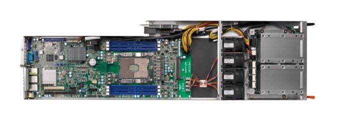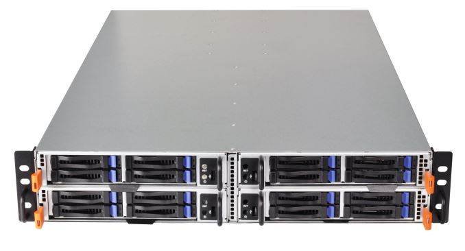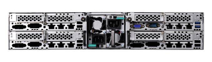 For a segment of Xeon Phi customers, density is important. Pack ‘em, rack ‘em and stack ‘em is the end goal, and the 2U4N-F/X200 aims to do just that. The 2U server uses half-width modules to fit in four separate systems in the chassis, each with an X200 Xeon Phi CPU, six DIMM slots with support for DDR4 2400/2133 RDIMM/LRDIMM, four 2.5-inch storage slots (either 4xSATA/SAS or 2xNVMe+2xSATA/SAS), two PCIe 3. X2 slots, one M.2 slot, a combination 1600W 80 PLUS Platinum redundant (1+1) power supply for the four nodes, two GbE Intel i350 network ports and integrated IPMI 2.0 (via AST2400) with KVM and a dedicated LAN port.