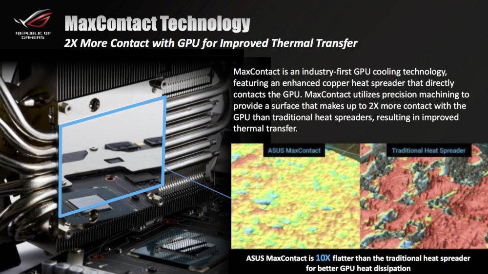 As far as the core specs go, they are obviously identical to the reference GeForce GTX 1080 Ti. It features a total of 3584 CUDA cores and 11GB of GDDR5X memory with a 352-bit memory bus. The slides below also suggest that Asus has done a great work with the cooling solution on the card. The slides claim the card runs quieter than the Founders Edition card by an impressive margin, while also running cooler. It will also include a 10+2 phase VRM and draw power using dual 8-pin power connectors.