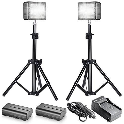 Dimension:3.25 x 1.5 x 1.75 inchKit include:(2)LED-204 LED Video Light+(2)32″/80cm Aluminum Alloy Light Stands+(2)2600mAh Replacement Battery for Sony NP-F550/ NP-F570/NP-F530+(1)Battery Charger&Car Adapter