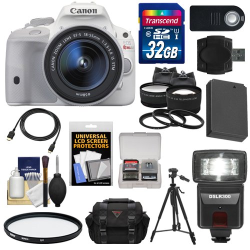 - [1] Canon EOS Rebel SL1 Digital SLR Camera & EF-S 18-55mm IS STM Lens (White) + [2] Transcend 32GB SDHC 300x Card + [3] Precision Design DSLR300 Flash +