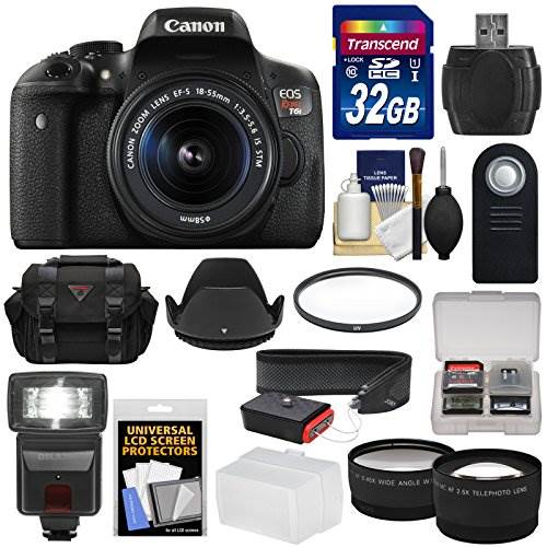 [1] Canon EOS Rebel T6i Wi-Fi Digital SLR Camera & EF-S 18-55mm IS STM Lens + [2] Transcend 32GB SDHC 300x Card + [3] Joby 3-Way Camera Strap +