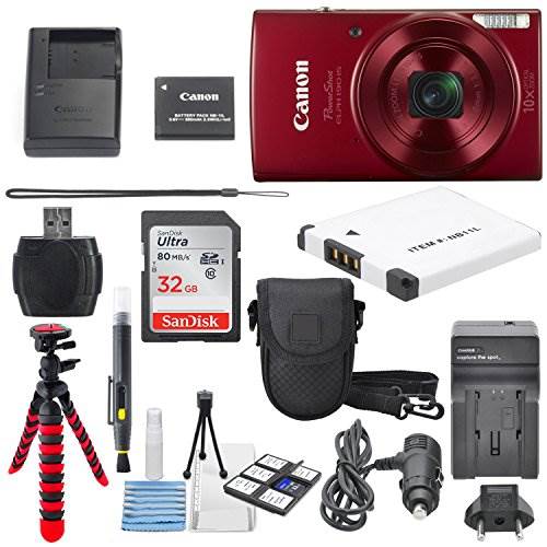 Our exclusive starter kit contains the Canon PowerShot ELPH 190 Digital Camera , 32GB SD card, starter cleaning kit, SD card reader/writer, Tabletop tripod, AC/DC Turbo Travel Charger, extra battery, and a protective case.