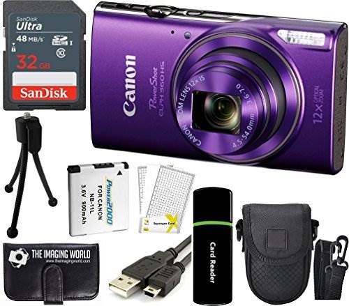 A versatile 12x optical zoom lens offers a 25-300mm equivalent focal length range, covering wide-angle to telephoto perspectives. This broad reach is complemented by a versatile Intelligent IS image stabilization system that minimizes the appearance of camera shake for both stills and video shootingKit Includes 12 Products: Canon PowerShot ELPH 360 HS Digital Camera + NB-11LH Lithium-Ion Battery Pack + CB-2LF Battery Charger + WS-800 Wrist Strap + Limited 1-Year Warranty