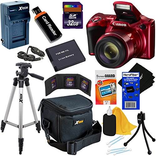 Additional NB-11L Rechargeable Lithium ion Replacement Battery – AC/DC (home/car) Battery Charger – Xtech Well Padded Digital Camera Carrying Case with Pocket, Neck Strap & Belt Loop