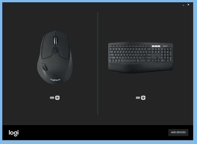 The Unifying receiver bundled with the package is obviously configured to keep both devices active simultaneously. Installing the Logitech Options software presents both devices along with the battery levels and connection method (Unifying receiver or Bluetooth) at a single glance.
