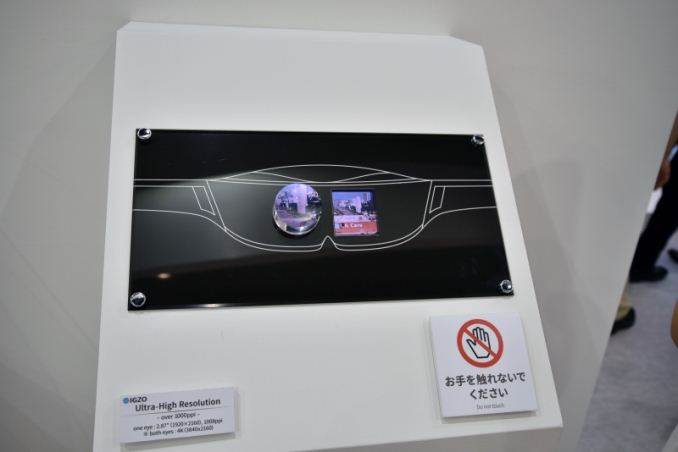 Also in the display was a 2.87-inch display, offering 1920×2160 resolution and rolling in at over 1000 pixels per inch (1008 PPI). This was described as ‘4K to both eyes’, affording a combined display suitable for head-mounted units or virtual reality headsets. Compare this to the HTC Vive, which uses a 1200×1080 screen per eye at 3.62 inches per panel, making it 447 PPI. This gives the Sharp panel a specification of over double the amount of pixels in a given area. Of course, with that comes cost and the ability to feed that display with enough data either over cable or other means. Still, it’s an interesting prospect.