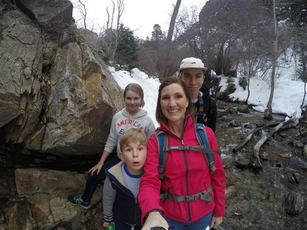 Despite having stage four metastatic cancer that has spread to her bones and lungs, Johnson is determined to celebrate being alive — and that means frequent outdoor adventures with her children: Ben, 16, Brinley, 14, and Brooks, 9. On a recent excursion to Adams Canyon in the Wasatch Mountains, as she and her family traversed the picturesque snowy mountain slopes, Johnson made sure to turn her camera on herself to record messages for the SafeBeyond platform.