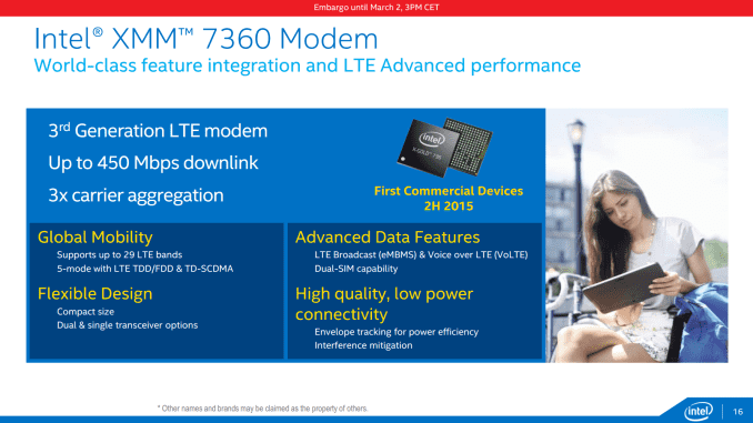 The XMM 7360 is a high-end LTE Advanced modem design that offers up to Category 10 performance (450 Mbps down). This is achieved in part through the use of 3x carrier aggregation, which allows the modem to use up to 60Mhz of wireless spectrum. The modem does not support CDMA, and as the iFixit team has turned up a Qualcomm Snapdragon X12 (Cat 12) modem in their unit, Apple is clearly using modems from multiple vendors. It’s not clear how this breakdown works – if Apple is using the Qualcomm modem in some GSM phones as well – but at a minimum the Qualcomm modem will have to be in all of the CDMA-capable models.