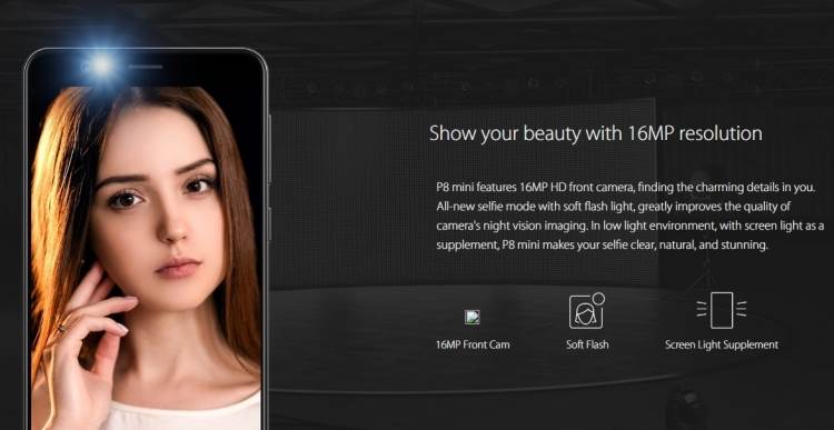 P8 mini features 16MP HD front camera, finding the charming details in you. All-new selfie mode with soft flashlight greatly improves the quality of camera’s night vision imaging. In the low light environment, with screen light as a supplement, P8 mini makes your selfie clear, natural, and stunning.