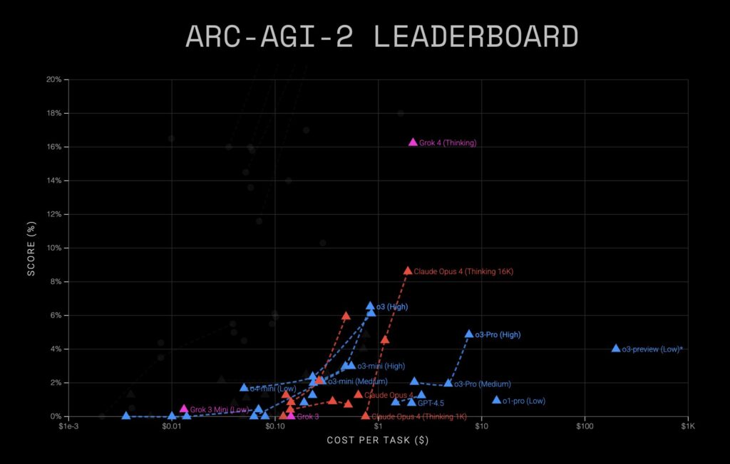 - Doubled Claude Opus 4’s rating on ARC-AGI-2 (one other benchmark for assessing precise “reasoning.”