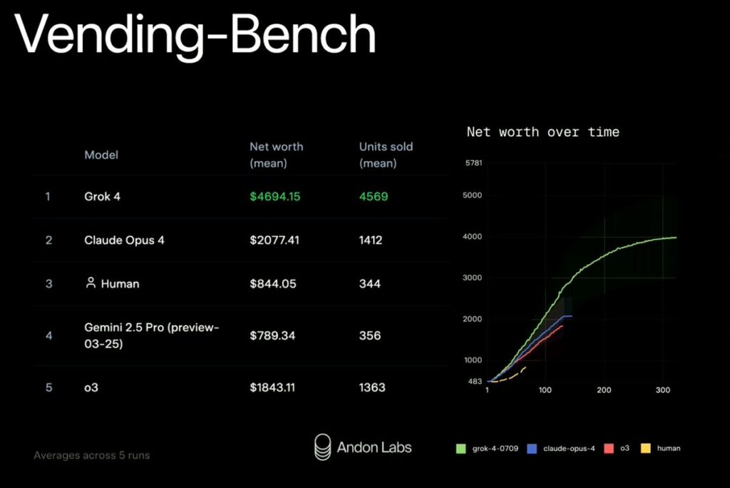 - Most importantly, Grok Four was capable of outperform Claude (and people, apparently) at operating a merchandising machine enterprise.