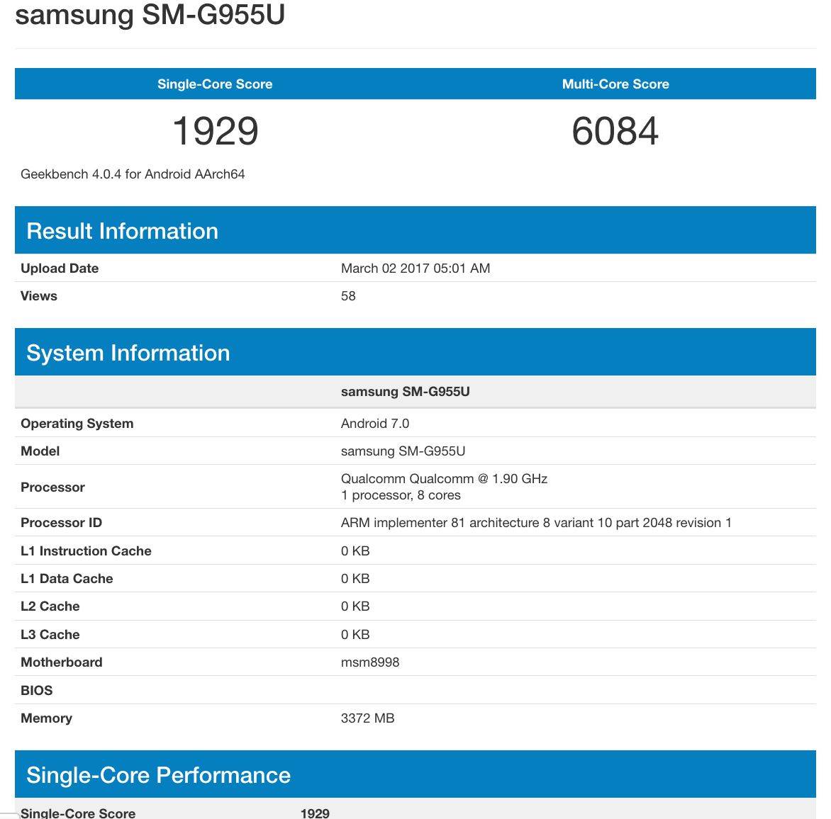 The Galaxy S8+ prototype managed to score 6084 points in the Geekbench multi-core test and 1929 points in the single-core test. While both scores are higher than what the Exynos 8890- and Snapdragon 820-powered Galaxy S7 Edge versions score, the gap between the Galaxy S7 Edge and the Galaxy S8+ isn’t as wide as we would have expected. However, we have to keep in mind that these are not final scores and it is not uncommon for prototype models to score lower for various reasons.