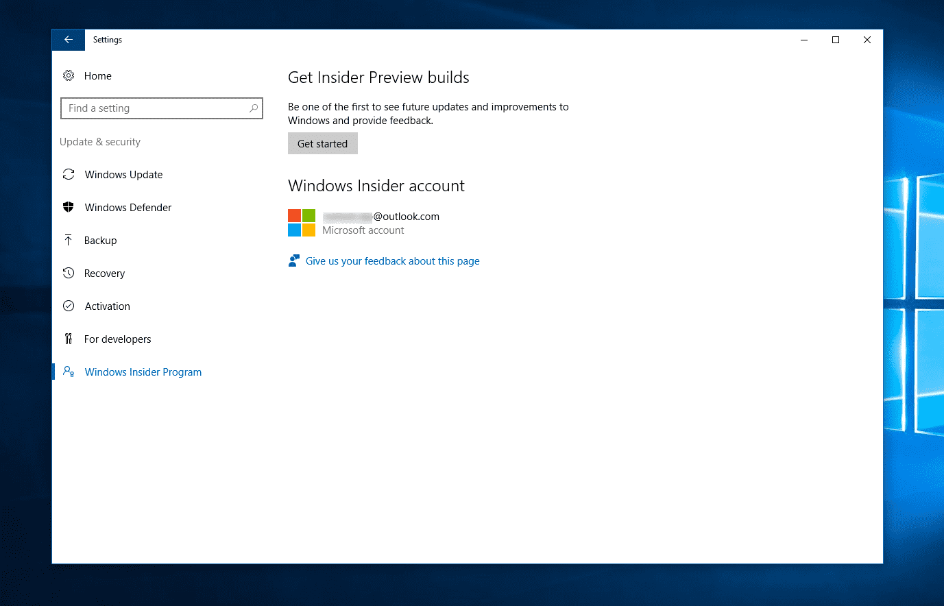- After that, you should see a button that lets you Get Started with Insider Preview builds