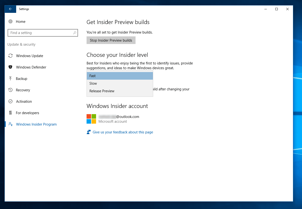 - Under the “Choose your Insider level,” you will see a dropdown with three different options: Fast, Slow, and Release Preview. By default, you will be enrolled into the Release Preview — but to get the latest Creators Update features, you need to enroll into either the Fast or Slow rings: