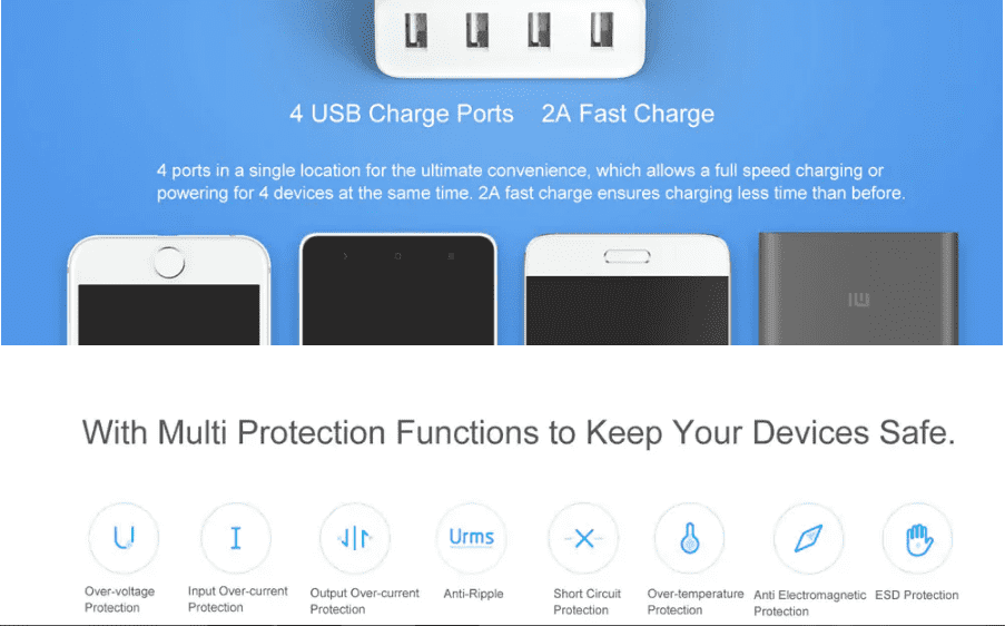 The Original Xiaomi Mi USB Charger 4 Ports comes with a very simple design and also simple to use. Its all in one design makes it more space-saving and well-organised while charging, you don’t have to worry about cable chaos. This 4 ports in a single location allow full speed charge of 4 different devices simultaneously.It also sports wide input voltage range of AC 100- 240V (50/60Hz) for worldwide use. So anywhere you are, you can actually purchase this device as it would be compactable with your voltage supply.