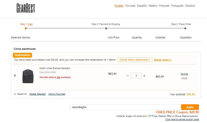 The Xiaomi Unisex Business Backpack is currently on Gearbest for $32.99. But you can get it for $29.99 if you use the coupon code