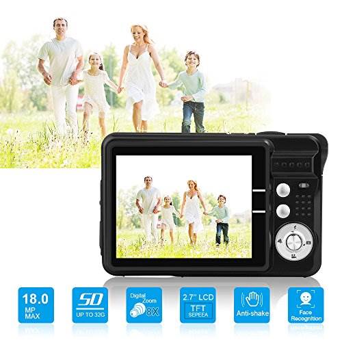 Features: 2.7″ TFT LCD display with 8x digital zoom,Built in flash; 18MP resolution for good photos and HD 720P resolution for better recording.