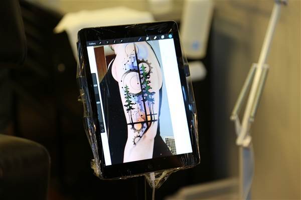 “It’s a completely different way of thinking,” said Nordine, explaining that the days of drawing on transparency paper are long gone for him. “I now can take my image and bounce it to my next iPad so I have a visual while I’m tattooing. I can zoom in on it if I want to to see the detail. I can change it in an instant.”