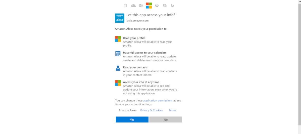3. Agree to let Amazon access your Microsoft Calendar.