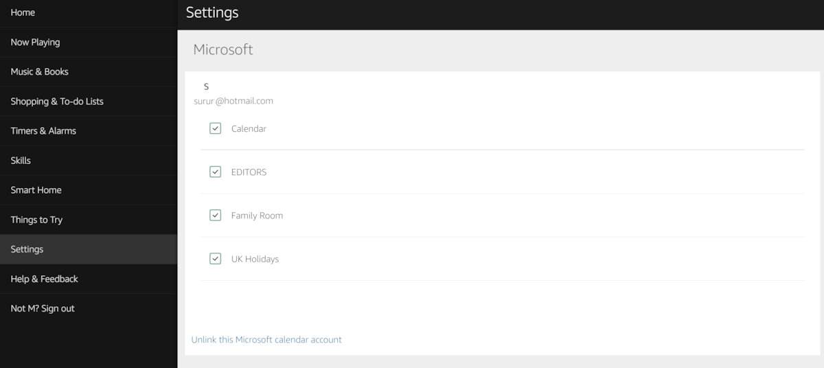 5. Refresh the page at Alexa.Amazon.com and you should see the calendars linked.