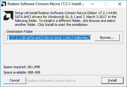 The drivers that worked on launch day are the Crimson ReLive 17.2.1 Chipset Drivers, dated March 3rd. The following links are for the 64-bit versions.