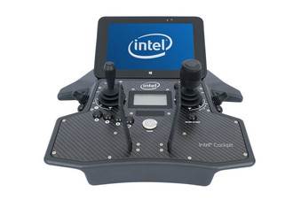 The Intel Cockpit is a redesigned mobile ground station, with water-resistant user interface, twin joysticks and an integrated Intel tablet. It is able to fly for up to 26 minutes at a time on a redundant power pack.