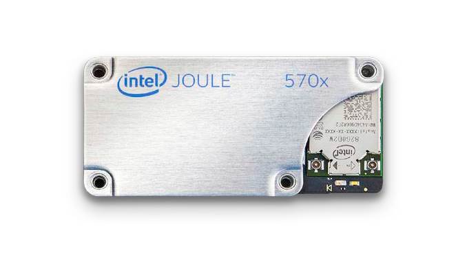 Intel is offering two different versions of the Joule board. Both use the same SoC, but they vary in clockspeeds and memory. The more powerful of the two, Joule 570X, uses what Intel is calling a Atom T5700, which is a quad core Goldmont Atom configuration with a base clock of 1.7GHz and can turbo to 2.4GHz. This in turn is paired with 4GB of LPDDR4 memory and a 16GB eMMC NAND module for non-volatile storage. Meanwhile the Joule 550X drops the quad core Atom to 1.5GHz with no turbo, and features 3GB of LPDDR4 memory along with 8GB of NAND.