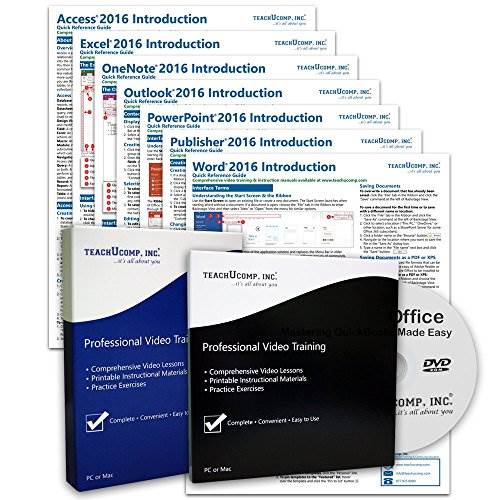 Learn Microsoft Office 2016 & 2013 with this Deluxe training package from TeachUcomp, Inc. Mastering Microsoft Office Made Easy features 809 video lessons with over 42 hours of introductory through advanced instruction on both DVD-ROM to play on your PC or Mac and via online with your web browser for one year (with enclosed Online Key Code). In addition, you’ll get our seven Introductory Quick Reference Guides- printed, laminated guides with step-by-step instructions in the most critical functions (24 pages and 375 topics).