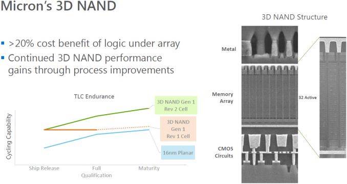 It is unknown how many layers in total will Micron’s Gen 2 3D NAND chips have, but it is important to note that various experts indicate that once the number of layers within a 3D NAND IC reaches ~60 or ~70, new challenges arise.