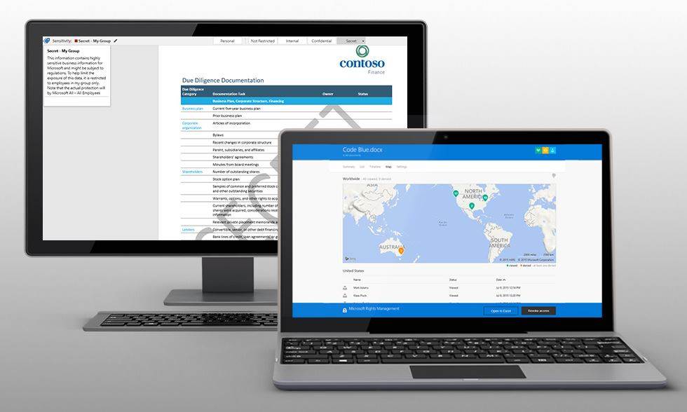 - Company collaboration – this new feature enables content to be protected to all users within a specified organization, for example any user who works at Contoso. This is particularly useful in B2B scenarios like supply chains and M&A activitie.