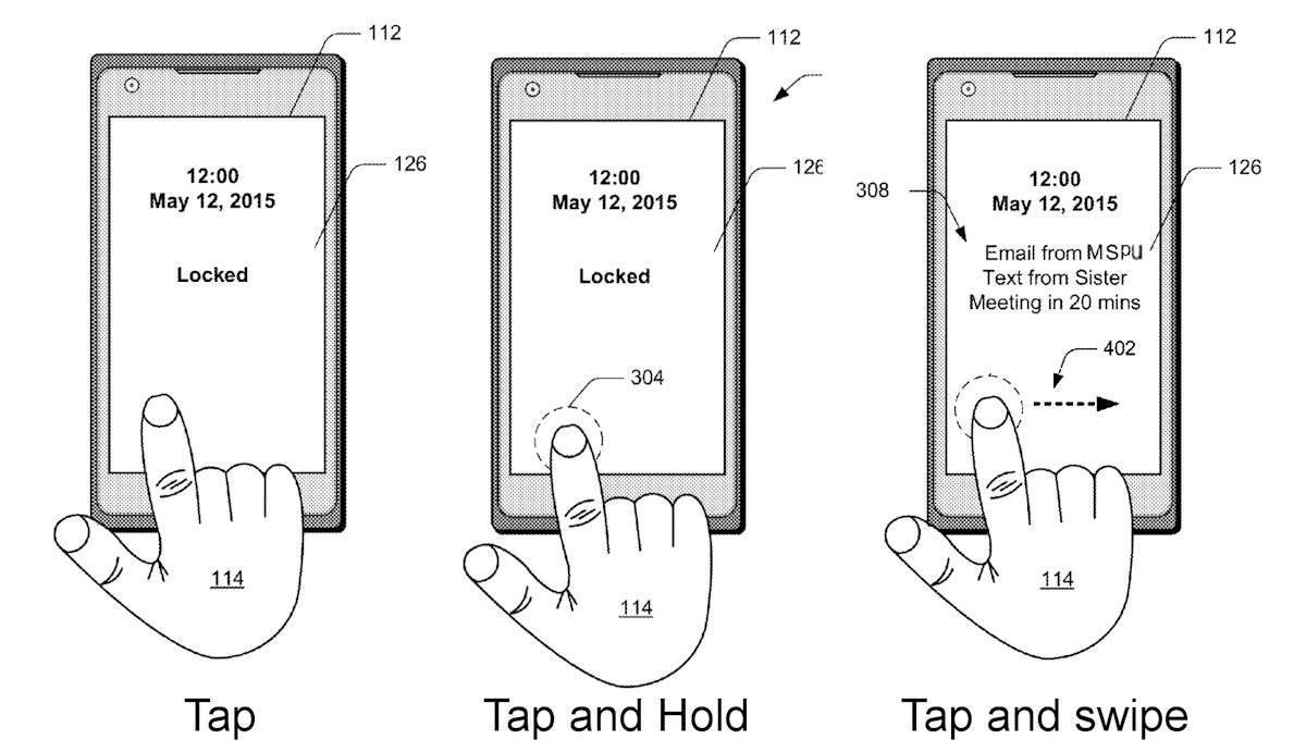 Microsoft postulates 3 gestures, all starting from the device being locked. One would be a simply tap, the second tap and rest or tap and hold, and the third tap and swipe which would all result in different actions, such as simply unlocking the device, displaying notifications or showing appointments etc.
