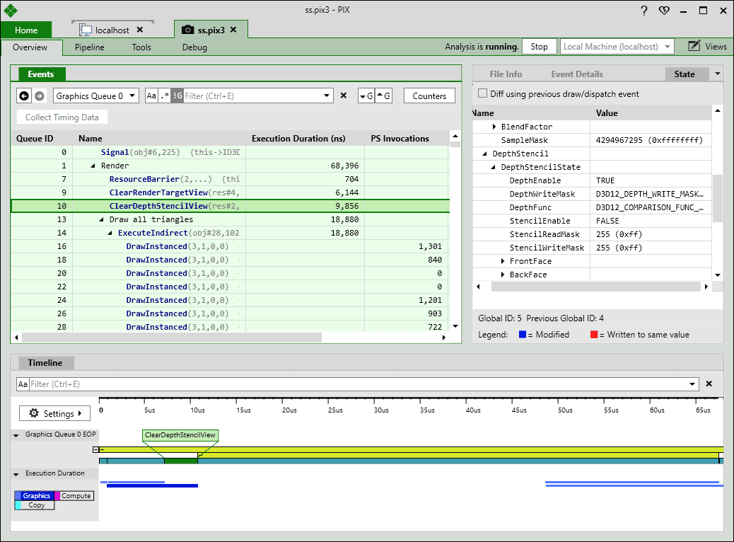 - GPU captures for debugging and analyzing the performance of Direct3D 12 graphics rendering.