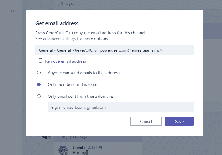 Moving on from public teams, Microsoft is adding email integration to Teams. What this feature essentially does is sends email sent to an email on a team or conversation. When you set this feature up, Microsoft Teams will give you an email address (custom email addresses aren’t available yet), and all the emails send to this address will get automatically sent to a conversation as a single message. By default, the feature lets anyone send emails to the email address — but you can change it to receive emails only from the members of your team or from domains.