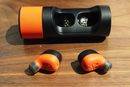 The orange and black design with matching charging case is attractive, but unlike in the press photos, the bulky buds don’t sit flush and tend to hang a bit awkwardly out of your ear. I suppose someone out there with larger ears than mine could pull these off a bit better, but for me, it’s tough. Sure, the battery and audio drivers add to their size, but the similar Bragi Dash manages a far sleeker design, with more features inside, no less. That’s not to say the VerveOnes+ ever felt like they were going to fall out of my ears, they sit in pretty well, but do feel as big as they look. As a bonus, at least, IP57 waterproofing means they can withstand sweaty workouts and even the occasional dunk in a sink.