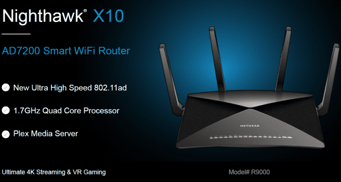 The Wi-Fi router market has seen a yearly cadence of flagship releases since the first 802.11ac routers came into the market in early 2012. Starting with 3×3 solutions, the market moved on to 4×4 and MU-MIMO-enabled Wave 2 solutions. We also saw Broadcom taking the lead with a dual 5 GHz radio solution (that has now been adopted by Qualcomm Atheros also). Many networking equipment vendors introduced solutions based on this. The recent mesh networking craze is also an offshoot of this dual radio solution – a dedicated ‘invisible’ channel is used to link the satellite to the main router (a discussion for another day). At CES earlier this year, the TP-Link Talon announcement indicated that tri-band Wi-Fi was getting traction in the market. Tri-band Wi-Fi involves radios operating in 2.4 GHz (802.11n), 5 GHz (802.11ac) and 60 GHz (802.11ad) bands. Today, Netgear is launching their first tri-band Wi-Fi solution – the flagship Nighthawk X10. It will be marketed as an AD7200-class router and will carry the R9000 model number.