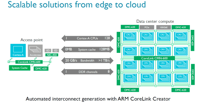 The idea behind a coherent mesh between cores as it stands in the ARM Server SoC space is that you can put a number of CPU clusters (e.g. four lots of 4xA53) and accelerators (custom or other IP) into one piece of silicon. Each part of the SoC has to work with everything else, and for that ARM offers a variety of interconnect licences for users who want to choose from ARM’s IP range. For ARM licensees who pick multiple ARM parts, this makes it easier for to combine high core counts and accelerators in one large SoC.
