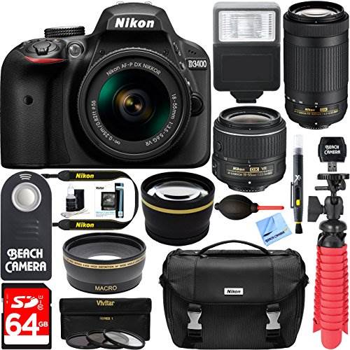 Nikon D3400 24.2 MP DSLR Camera with AF-P DX 18-55mm & 70-300mm Zoom Lens Kit