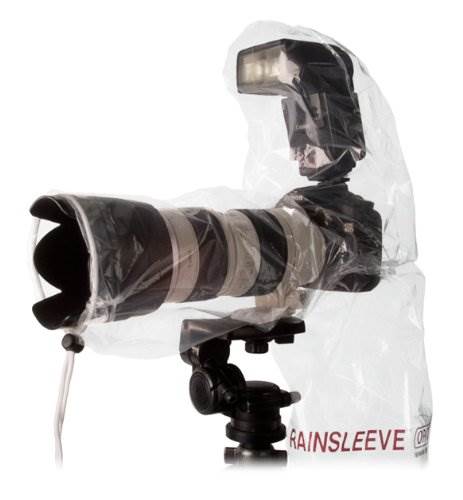 The Rainsleeve is the must-have accessory for avid outdoor photographers, offering a shield from the elements—rain, sand and snow—that fits easily in a pocket or camera bag. It features a unique eyepiece opening that adapts to most camera viewfinders, allowing composition of shots through the camera’s lens, not through the plastic. All camera and lens controls are easily seen and operated through the Rainsleeve . It can be used either hand-held or on a tripod. If shooting with a long lens, the tripod mount can be attached directly through the pliable plastic. If shooting using an OP/TECH USA neck strap, simply attach the quick disconnects directly through the pliable plastic. (Be sure to verify that you have a positive lock on the quick disconnects.) The drawstring enclosure uses a barrel lock to secure snugly around the lens offering added protection and convenience.