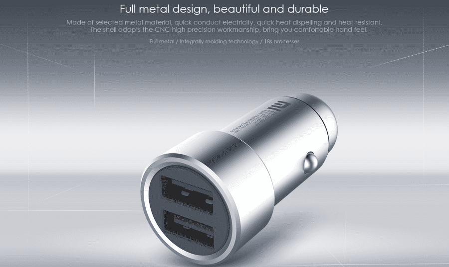 The Xiaomi Fast Charging Car Charger is made from some selected metal material which ensures the quick conduct of electricity, quick heat dispelling and also resist heat. isn’t that wonderful? The shell of this charger adopts the CNC high precision workmanship that brings you comfortable hand feel. It comes with a silver all-match appearance which looks pretty much like an ornament and has a comfortable feeling. It has a dimension of 6.00 x 2.10 x 2.20 cm and weighs just 37 grams. Compact but very industrious.