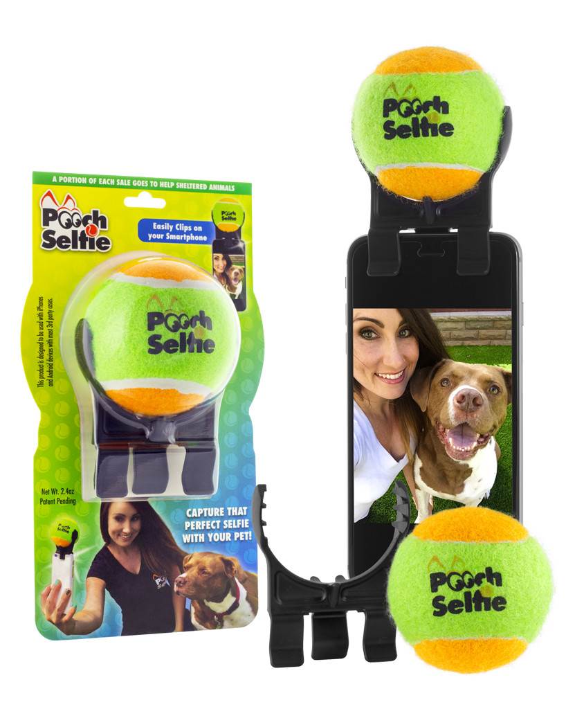 The PoochSelfie comes with its own brightly colored ball, but you can use just any tennis-sized ball you have lying around. Note that the accessory is advertised to work specifically with iPhone and Galaxy smartphones, but should be also compatible with other popular devices, as long as the clips don’t cover the front camera and you don’t have an overly bulky case. While the PoochSelfie has been designed with dogs in mind, perhaps you could also try it with your cat, as long as it is into brightly colored toy balls.