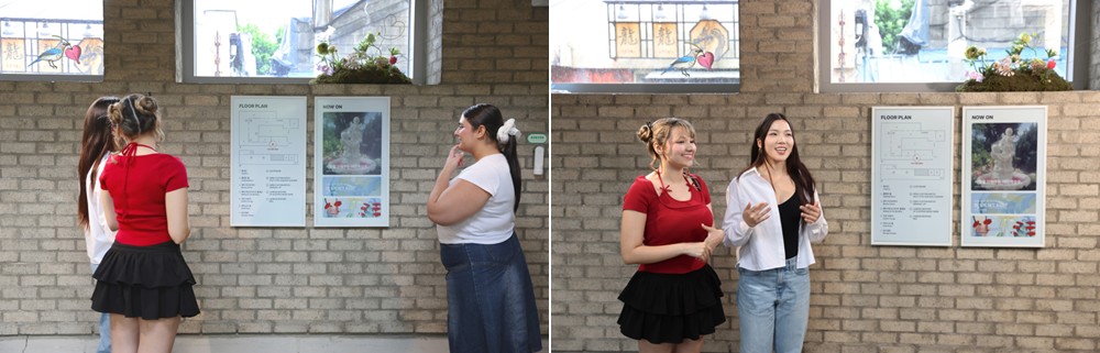 ▲ (Left photograph, from left) Alena Zhang, Hefziba Mancilla Plaza and Abigaël Mihalache recognize how Samsung Color E-Paper’s smooth design naturally blends into the shop inside.