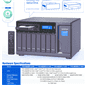 The TVS-882BR is a 8-bay NAS with a SATA expansion bay that can either support two slim optical drives or one 5.25″ optical drive. It is based on a Kaby Lake platform, supports PCIe NVMe SSDs and also two M.2 SATA SSD slots. There are three PCIe 3.0 expansion slots and three display outputs.
