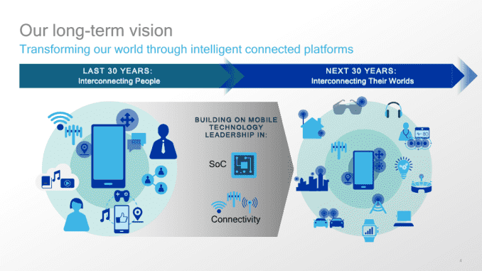 Right now Qualcomm is the world’s largest supplier of SoCs for mobile devices and telecom equipment. Last fiscal year the company earned $25 billion in revenue: $17B from selling chips and $8B from technology licensing. In the recent years Qualcomm has been trying to diversify its business and offered various solutions for automotive, IoT, healthcare and even datacenter industries. While the company has been gradually expanding its product portfolio with various solutions, mobile SoCs has remained its bread and butter for products sold. Moreover, some of the markets and products categories hard to break into due factors such as conservative approach of manufacturers, very long development cycles, etc. For example, despite of having CPU, GPU, sensors and other IP, Qualcomm has never made into Top 10 suppliers of automotive semiconductors (according to IHS).