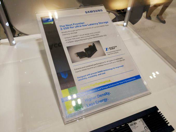 The Z-SSD line was announced back at Flash Memory Summit, although details were scant. This was a PCIe NVMe storage technology using Samsung’s new ‘Z-NAND’, which was aimed at the intersection between DRAM and SSDs (sounds like 3D XPoint?). Z-NAND is ultimately still baked in as NAND, although designed differently to provide better NAND characteristics. We still don’t know the exact way this happens – some analysts have pointed to this being 3D NAND/V-NAND running in SLC mode, given some of the performance metrics, but this is still unknown.